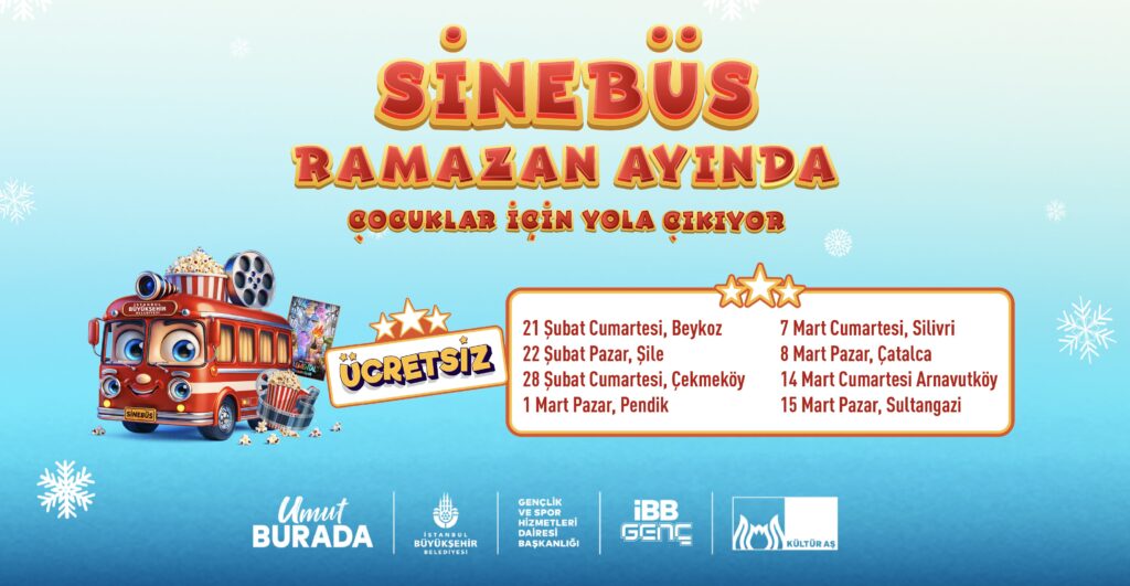 İstanbul’un farklı noktalarına sinema heyecanını taşıyan SineBüs’ün bu yılki yolculuğu 21 Şubat’ta Beykoz’dan start alacak. Gezici sinema otobüsü, şehrin bir ucundan diğer ucuna uzanan rotasıyla Şile’den Silivri’ye kadar geniş bir coğrafyada çocukların yüzünü güldürecek. Ramazan akşamlarına kültürel bir dokunuş katan etkinlik, mahalle kültürünü sinema sanatı ile harmanlıyor.